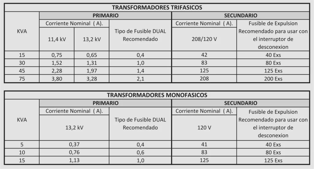 No existen en el mercado los suficientes tamaños de fusibles para realizar la coordinación con la corriente de carga del transformador primario.