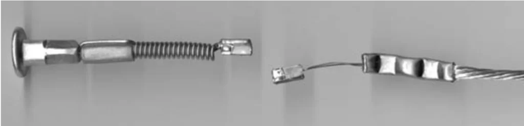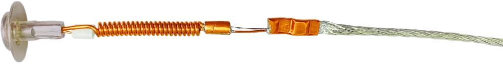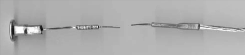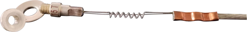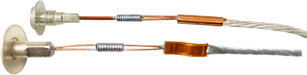 Al igual que con el tipo T, el cable de tensión y el elemento fusible se funden en algún lugar entre el punto del borne y el casquillo de cobre estos no se verían afectados.