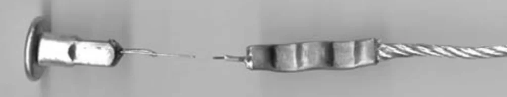 • Tipo SLOW-RAPID: las piezas permanecen intactas, la unión (junta de soldadura) parece desprendida y la sección rápida con los hilos convencionales permanecen intactos.