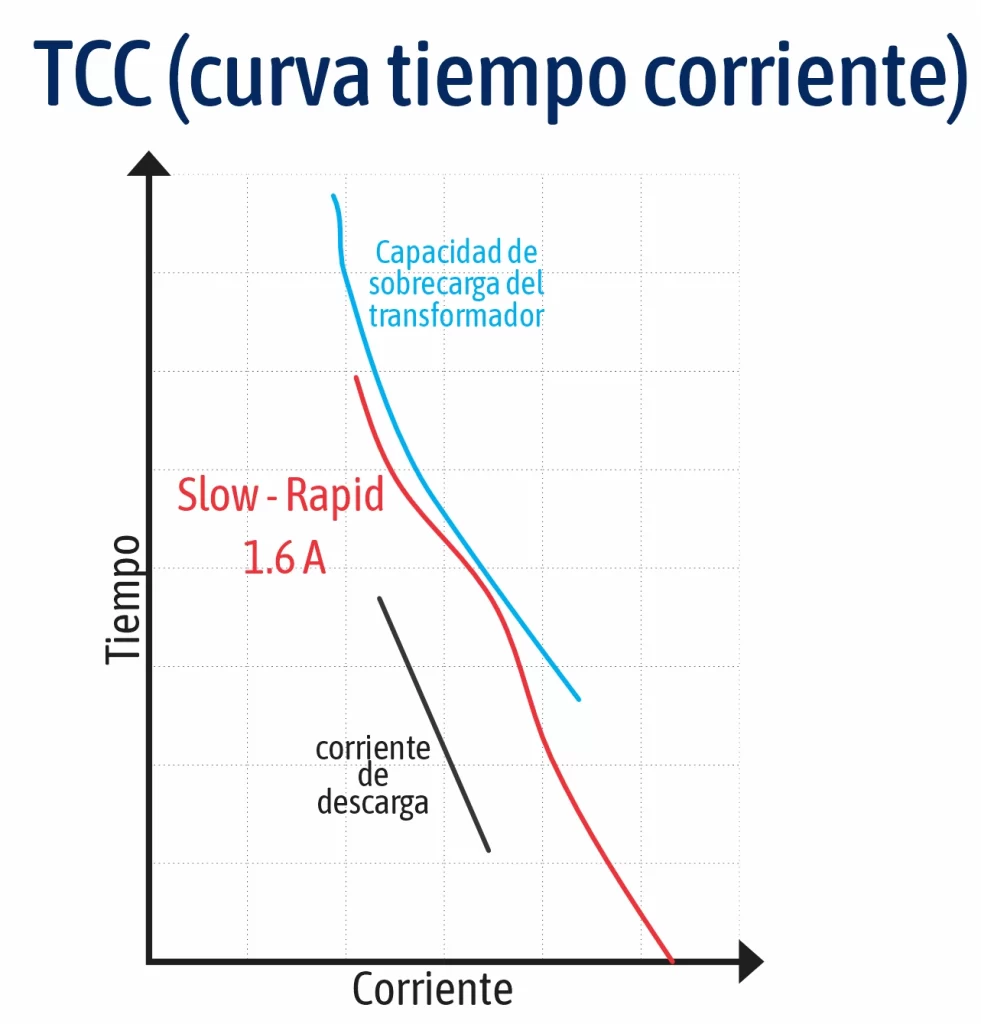 Los fusibles SLOW-RAPID tienen dos secciones que pueden funcionar con una corriente de 500 amperios o inferior. La sección RÁPIDA es similar a la de un eslabón fusible de tipo H, ya que el fusible funciona cuando la corriente de defecto está por debajo de 4 segundos de la curva de fusión mínima.